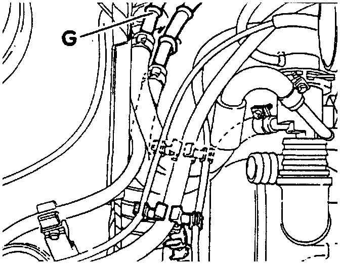 - Disconnect fuel feed hose/fuel line from bracket "G".