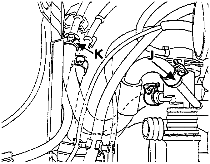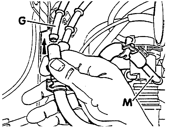 - Install new fuel feed hose; attach hose to fuel line "G" before attaching to fuel rail connection "M".