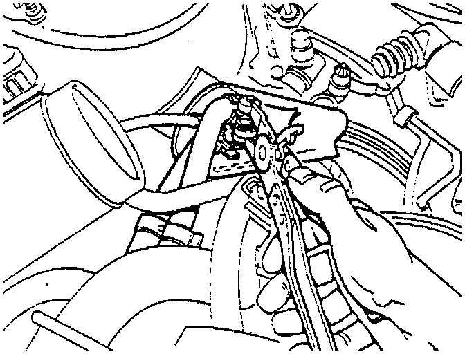 - Push heat insulation covering aside at lower fuel hose connection.