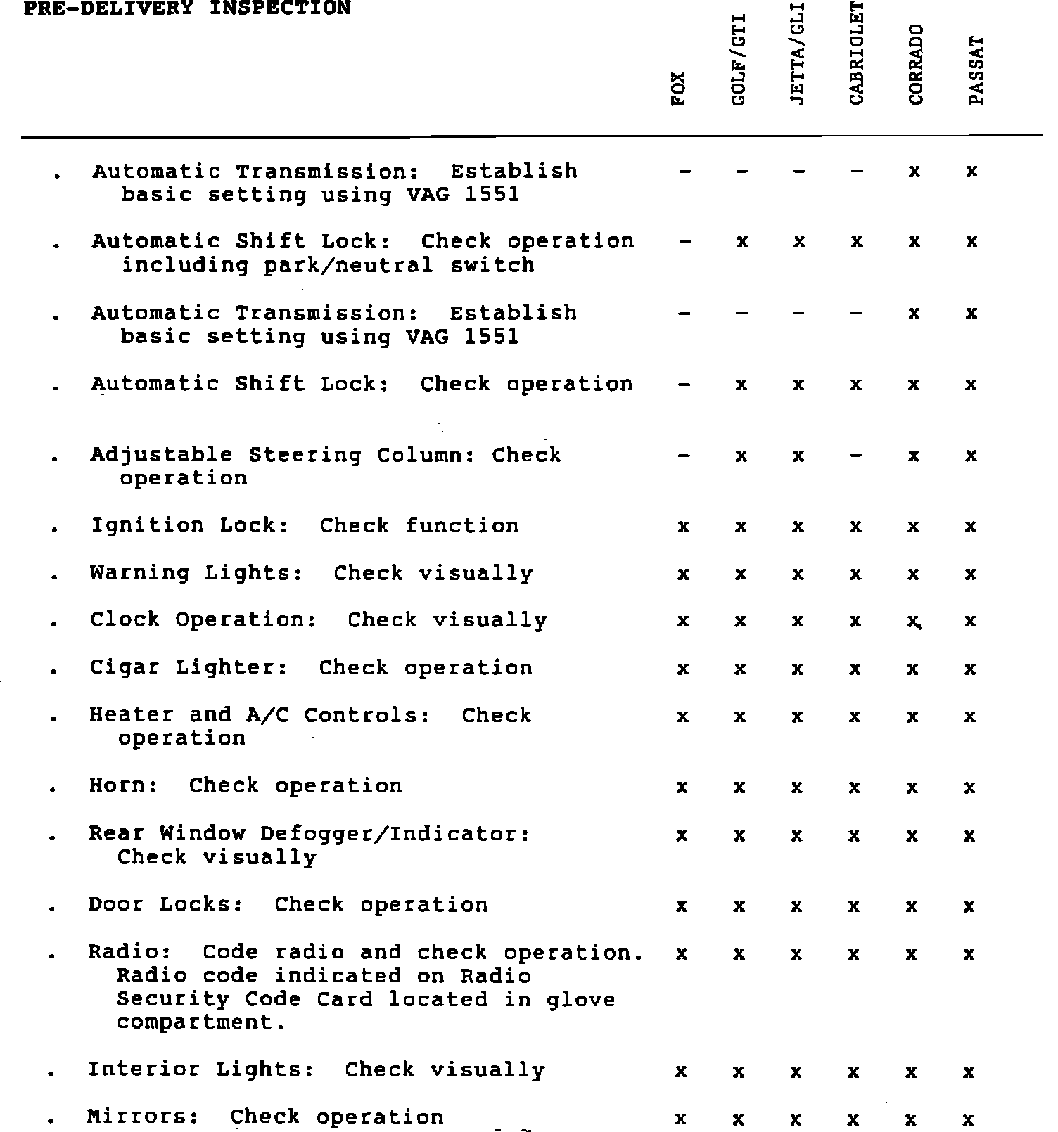 Pre-Delivery Inspection