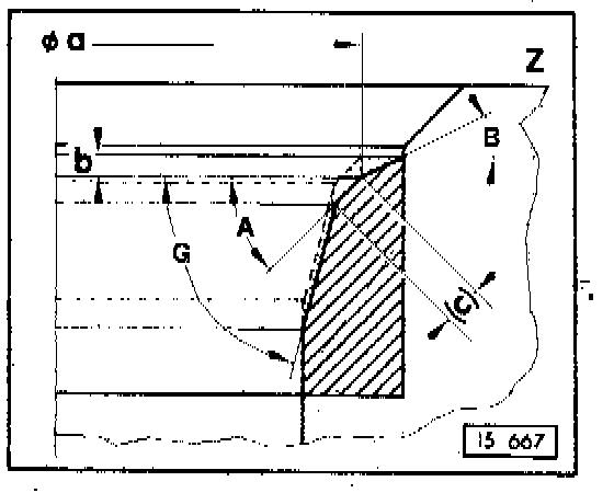 - calculate refacing dimension b (see example) using the measured distance a (above) and: