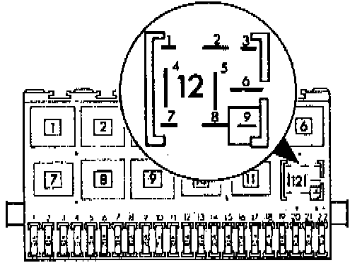 - remove fuel pump relay (J 17) from fuse relay panel (arrow) position 12