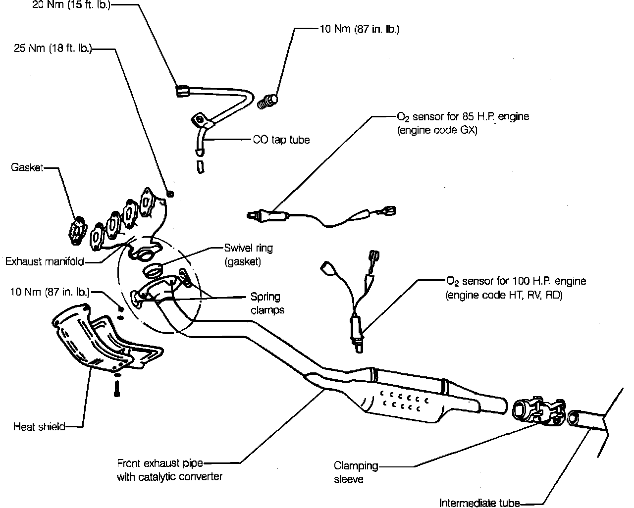 - Remove heat shield bolts from convertor front pipe.