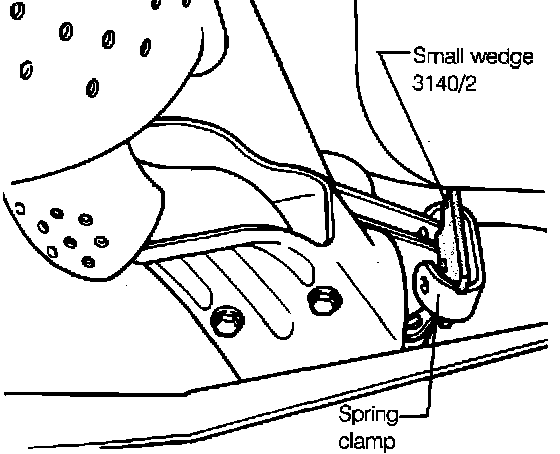 - Push front pipe to one side. Remove clamp and wedge as a unit using locking pliers.