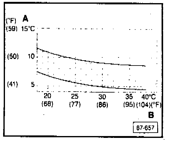 When outside temperature is 86°F, left vent outlet air temperature should be between 41°F-48°F.