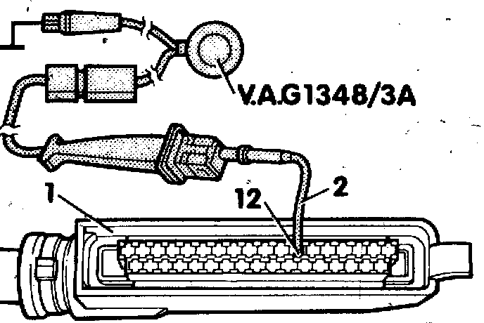 - Disconnect harness connector 1 from the Motronic Engine Control Module (ECM) and connect remote control VAG 1348/3A between terminal 12 and ground using jumper wires from the VW 1594 adaptor kit