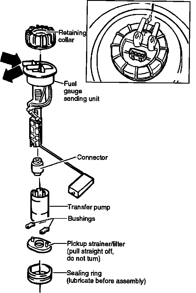 The Fuel Transfer Pump is mounted in the fuel tank as part of an integral assembly with the fuel gauge sender.