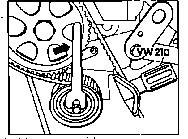 - Tension belt using tensioning wrench (e.g. Matra V159) in direction of arrow