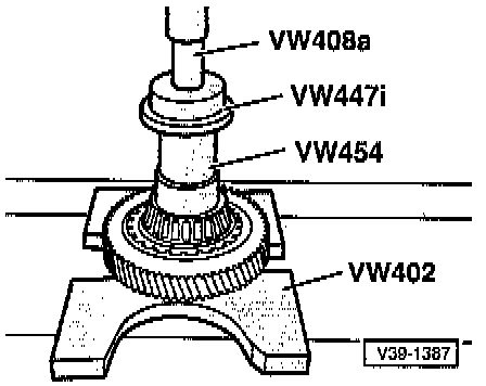 - Insert drive pinion with tapered roller bearing inner race, then drive in outer race.