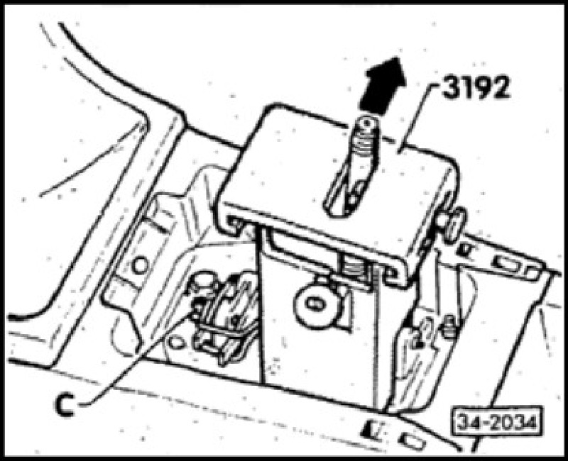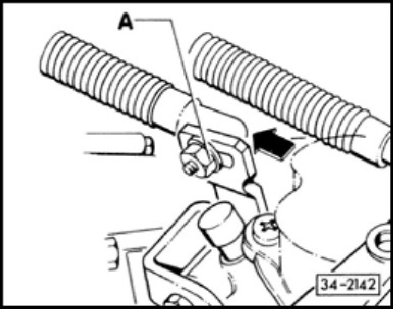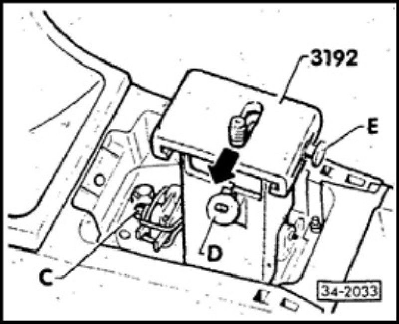 Press gearshift lever with slide to left stop (direction of arrow) and tighten slide with bolt E