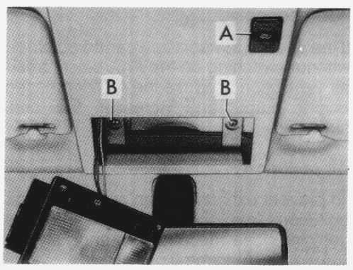 For access to cable drive, pry off interior light near sunroof switch (A) and remove cable-drive cover (screws B).