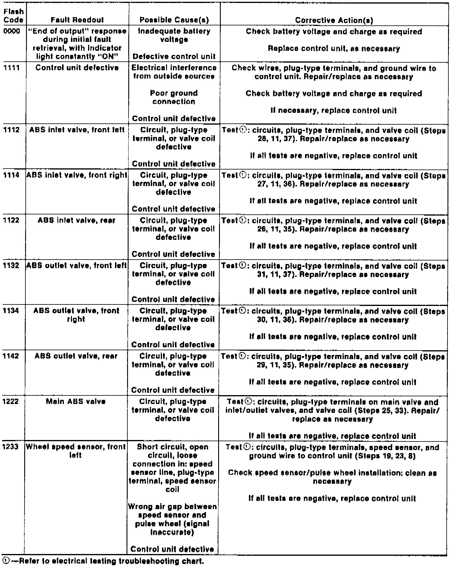 Fig. 12 Code 0000 Through 1233: DTC Table: