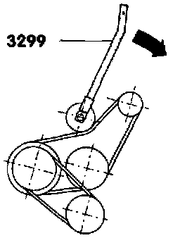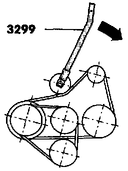 - Lower belt tensioner on to ribbed belt with special tool 3299.