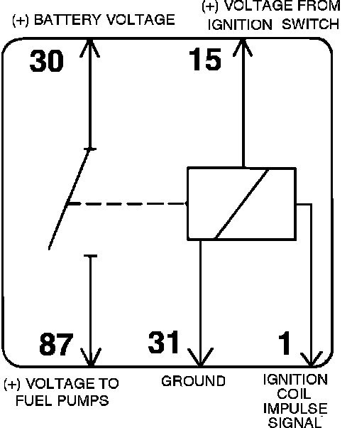 b. If the fuel pump does not run check the circuit from terminal #87 of the fuel pump relay socket to the fuel pump.