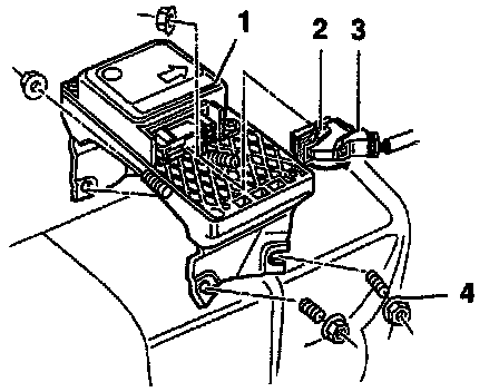 ^ Remove nuts -4- from studs and remove Airbag Control Module -1- with mounting bracket.