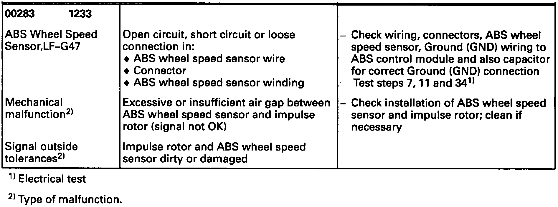 Fig. 27 Code 00283 / Code 1233: Front Left Wheel Speed Sensor: