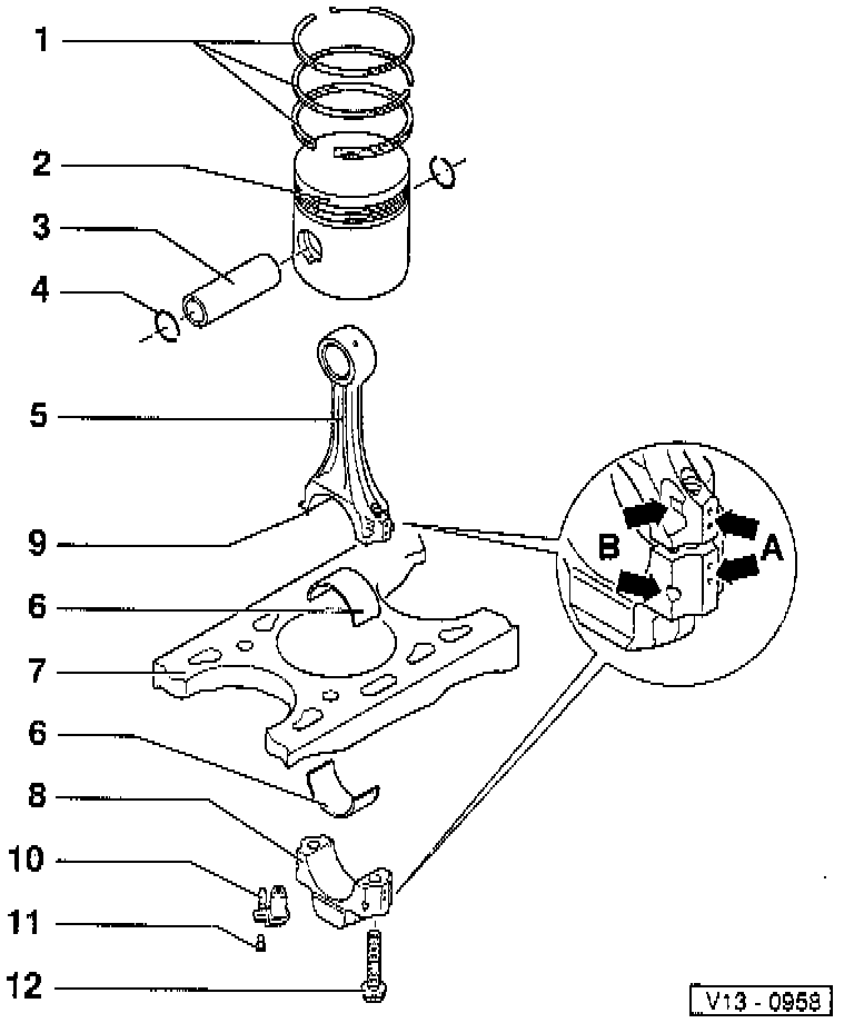 - When replacing rods, piston protrusion must be measured and the correct head gasket selected, refer to Cylinder Head Gasket.
