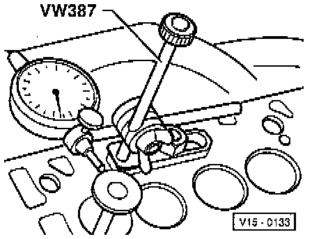 Rock valve from side to side and note total excursion. Maximum total permissible play: 1.3 mm (0.0512 inch).