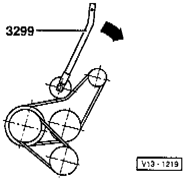 1. Lift tensioning roller with lever and remove ribbed drive belt from the alternator pulley.
