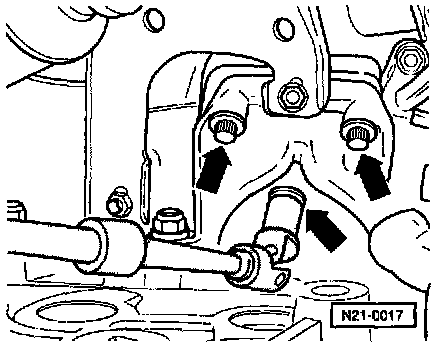 - Remove 3 mounting bolts (arrows) between turbocharger and exhaust manifold (using either box wrench or 3205 swivel wrench).