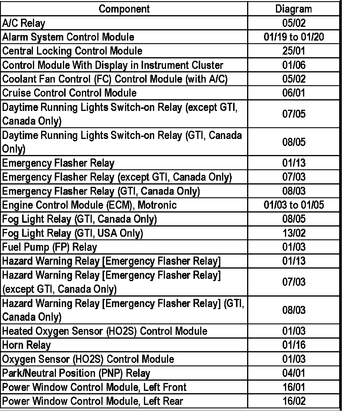 Master Diagram Index