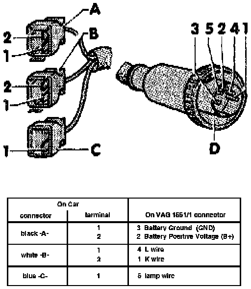 - Check voltage on black Data Link Connector (DLC) -A- in vehicle and note polarity.