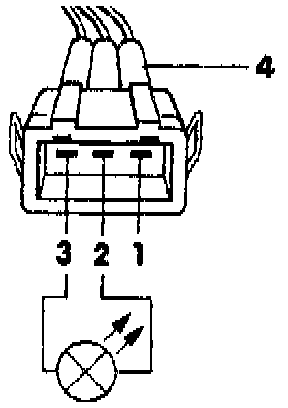 - Connect US 1115 LED tester to connector terminals 2 and 3 using adaptor cables from VW 1594 adaptor kit and VW 1594/15.