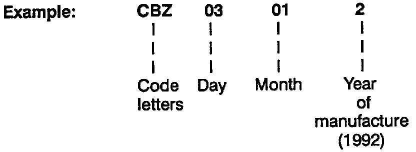 The manufacturing date is stamped into the top of the bellhousing (arrow 1).
