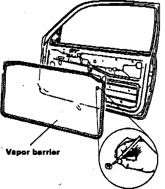 During reinstallation of the vapor barrier, there must not be any wrinkles in the barrier where it contacts the adhesive. This will cause water to leak onto the door panel and into the vehicle.