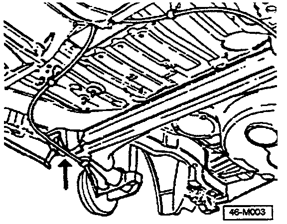 From March 1993 production all vehicles have parking brake cables with rubber spacers located in the area of the rear axle (arrow).