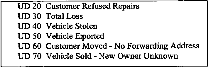 For all vehicles which, according to your information are unreachable, please enter into the system one of the codes indicated as applicable.