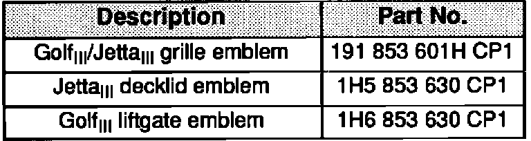 If front and/or rear VW emblems are peeling or discoloring, replace emblems with a new chrome plated part according to the part numbers listed.
