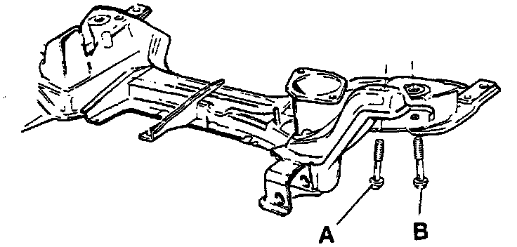 - if necessary, remove subframe mounting bolts -A- and -B- and clean PVC coating from contact areas of subframe and body