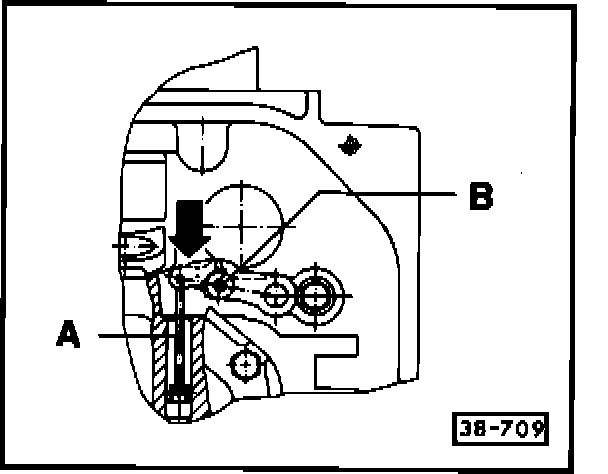 - Push operating rod -A- with manual shift valve into valve body as far as the stop (direction of arrow)