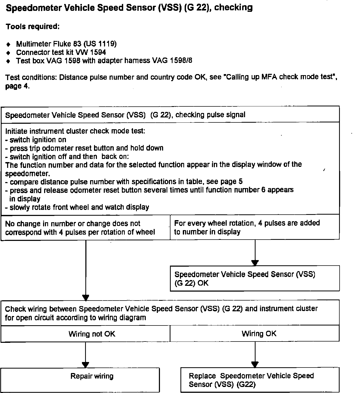 Speedometer Vehicle Speed Sensor (VSS) G 22), Checking
