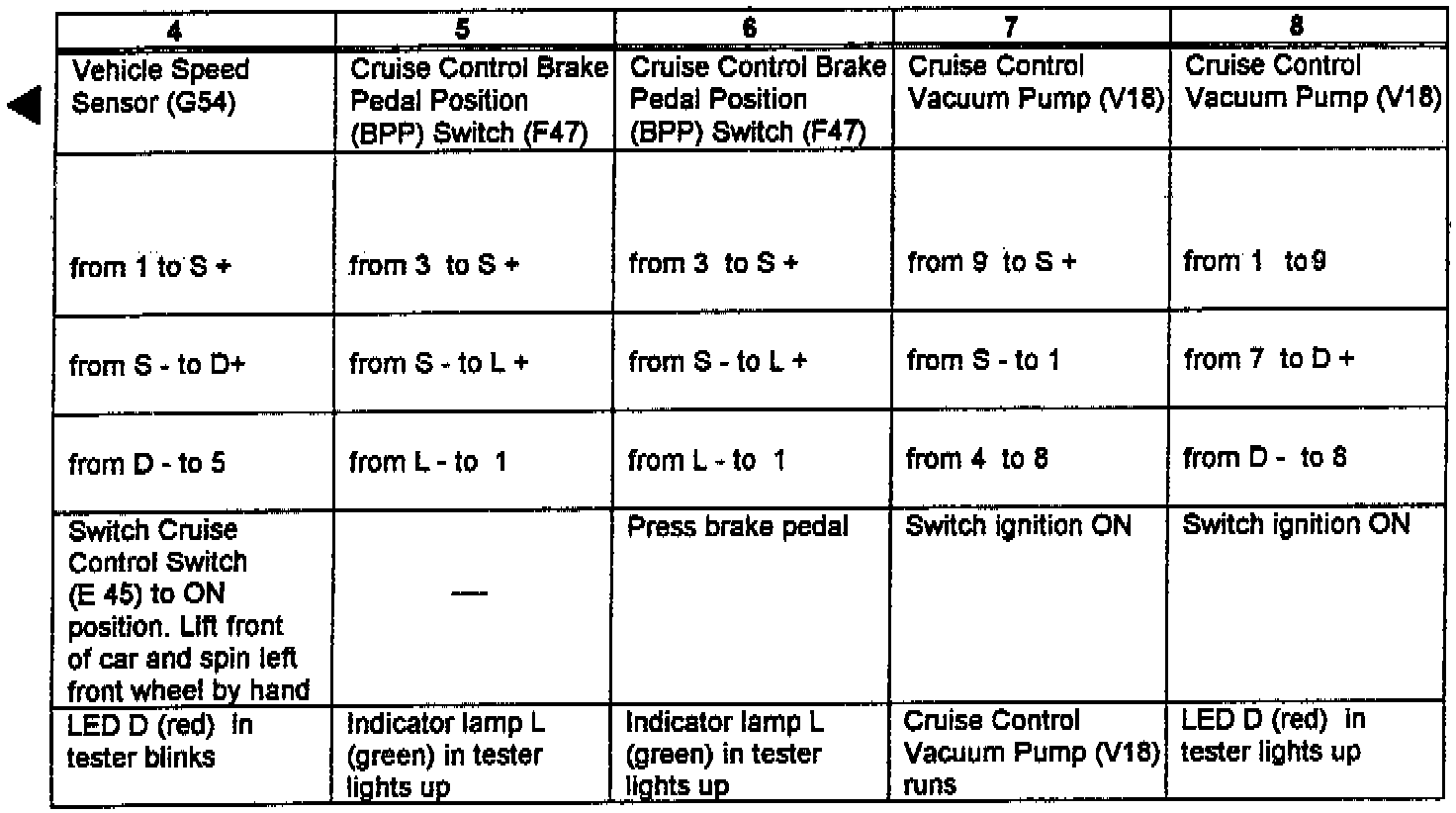 - Connect test adaptor VAG 146612 to cruise control, control module & pin connector (T8)