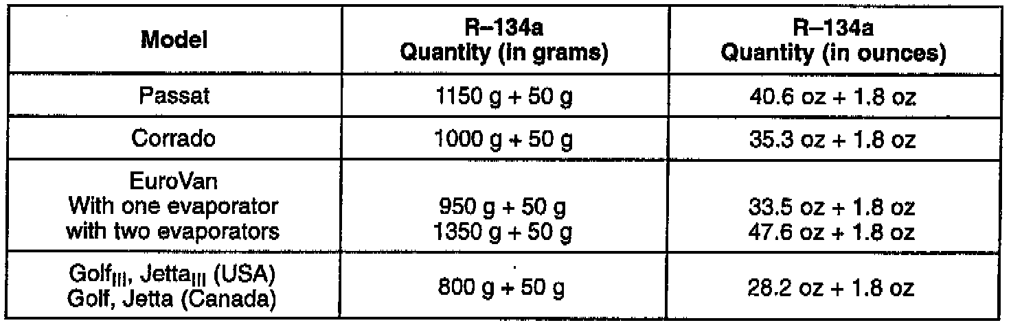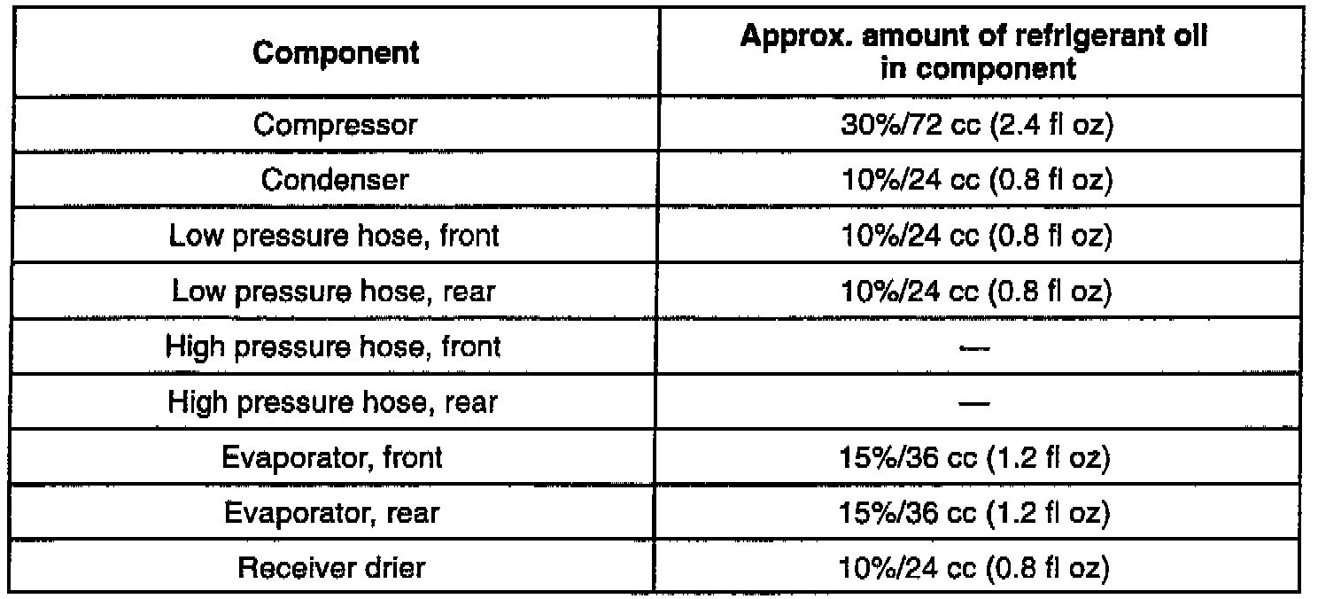 If a new compressor is installed, do not add any additional oil (except for EuroVan models with two evaporators) as the total amount of oil required is already in the compressor.