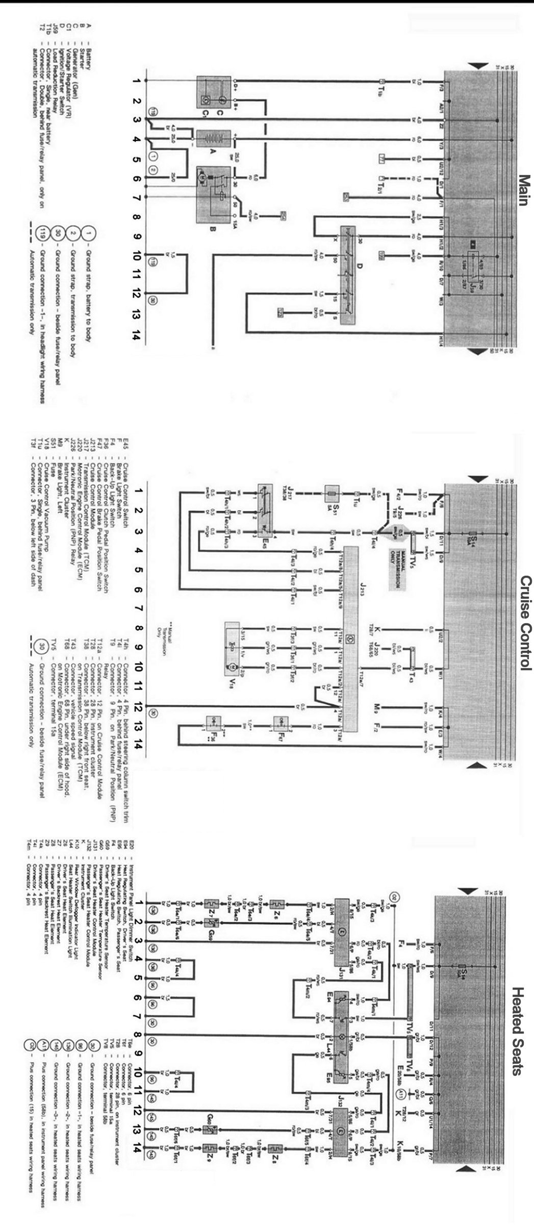 For example, while "Tracks 1 - 14" under "Engine Specific - Main Wiring Diagrams" may be used for "Battery, Starter, Generator and Voltage Regulator", the same term "Tracks 1 - 14" can also be used for the optional equipment diagrams "Cruise Control" and "Heated Seats", since they represent three separate diagram schemes.