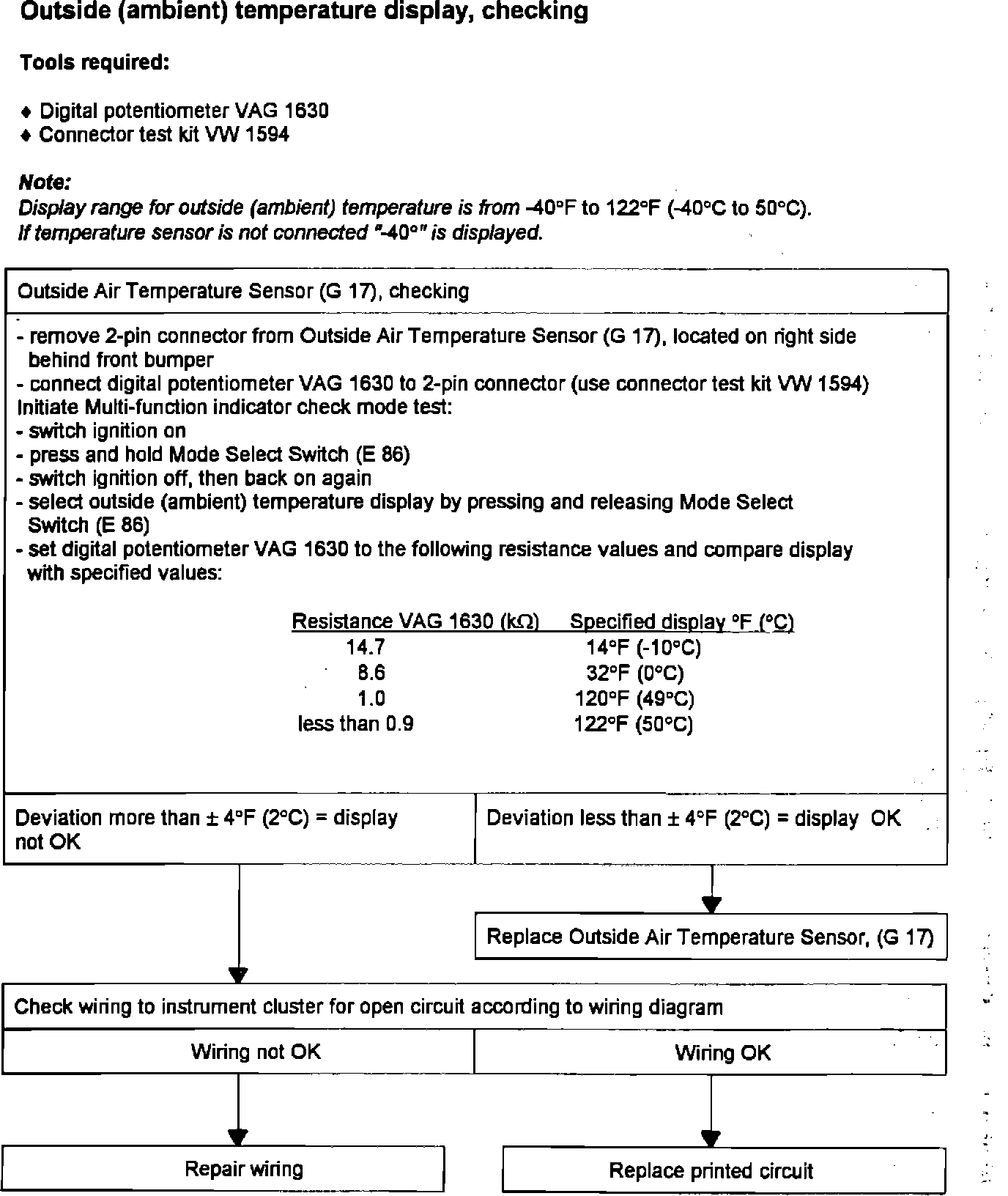 Deviations up to max. +/- 4% between actual and calculated driving distance are permissible. If the deviation is more than 4%, see "Speedometer Vehicle Speed Sensor, (G 22), checking", page 13. If the wiring and pulses from the Vehicle Speed Sensor (G 22) are OK, replace printed circuit.