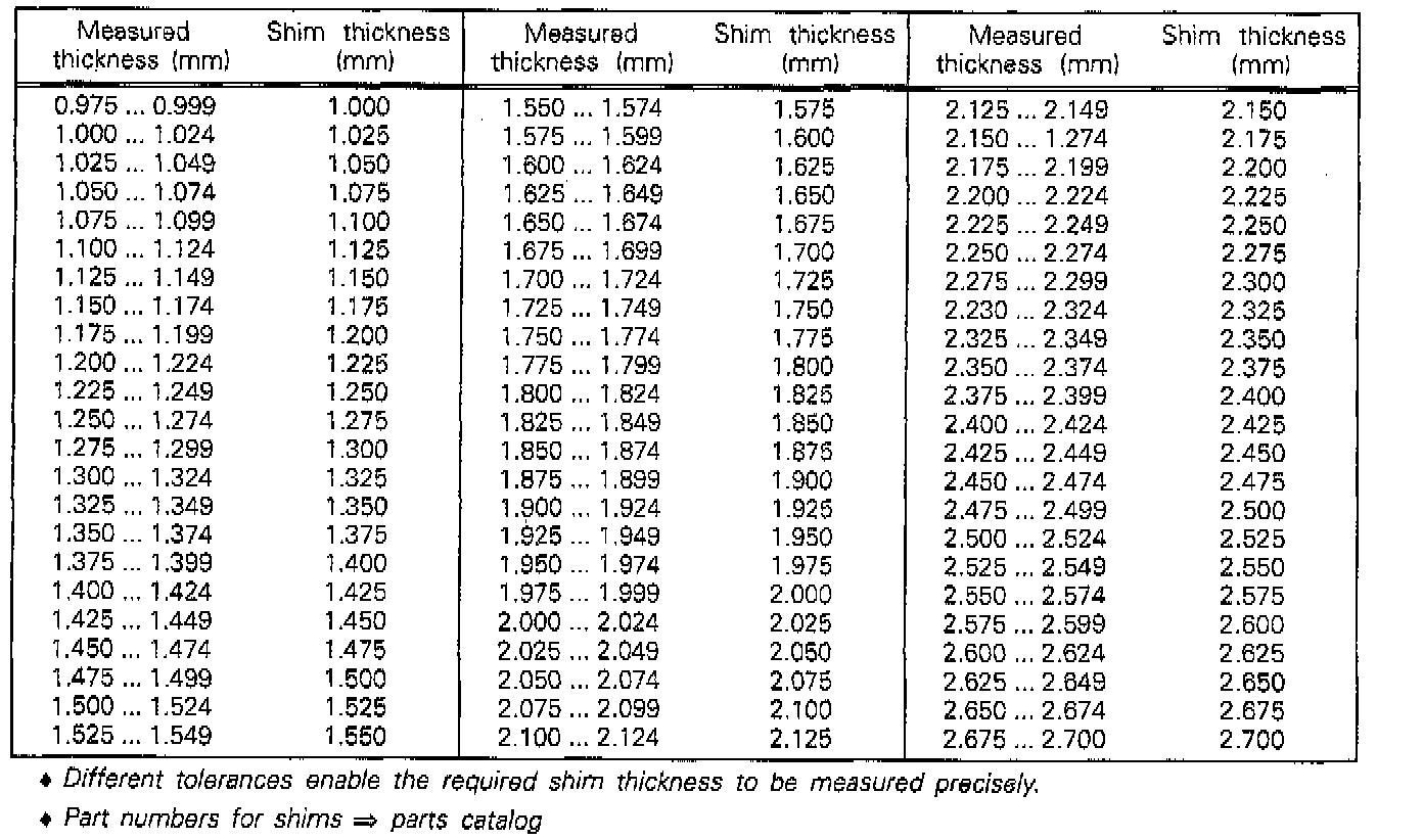 - The correct shim thickness is determined by deducting the specified bearing preload of 0.18 mm from the figure of 2.50 mm (example) obtained from the measurement.