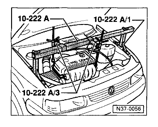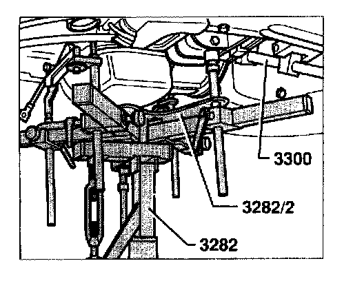 - Install support bar 10-222 A with legs 10-222 A/1 (6 cyl engine adapter 10-222 A/3) and support engine/transmission in this position.