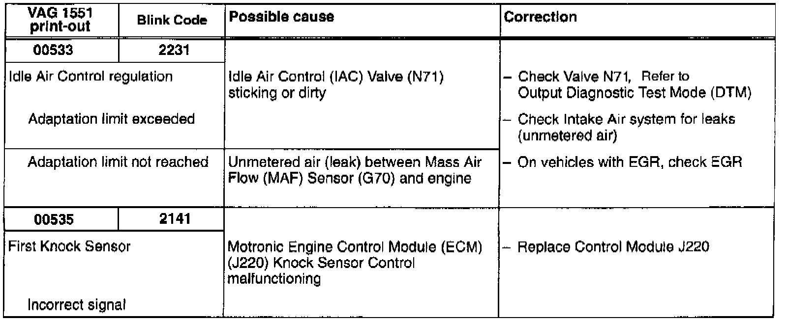 DTC 00533/2231, 00535/2141: