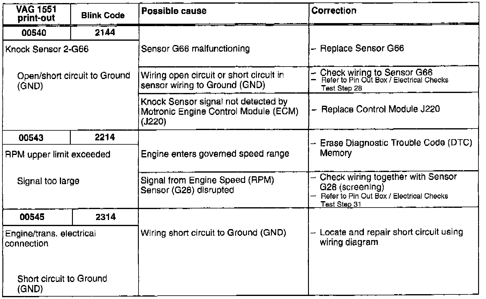 DTC 00540/2144, 00543/2214, 00545/2314: