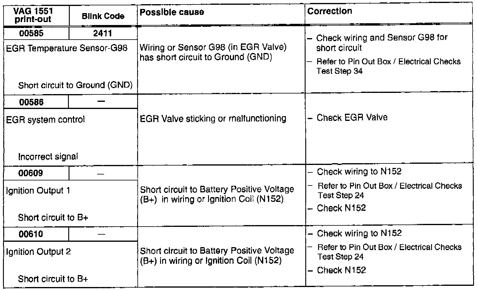 DTC 00585/2411, 00586/-, 00609/-, 00610/-: