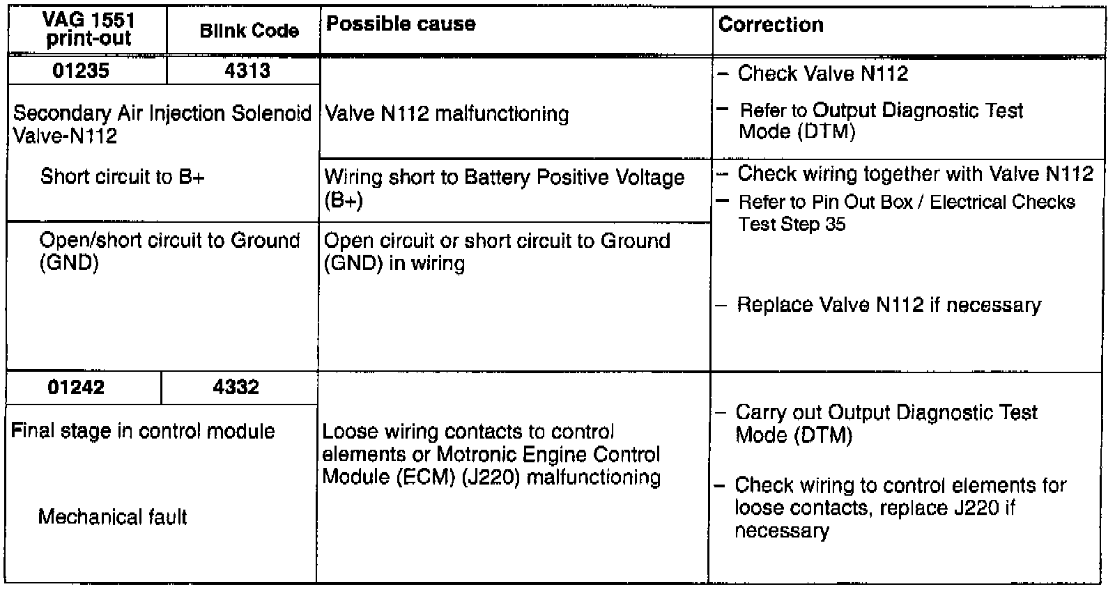 DTC 01235/4313, 01242/4332: