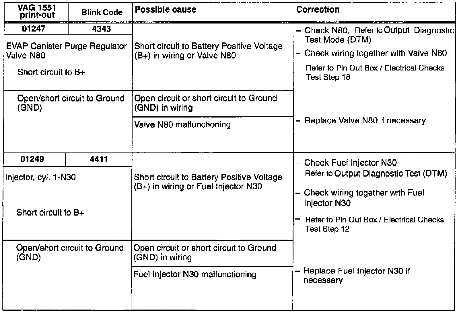 DTC 01247/4343, 01249/4411: