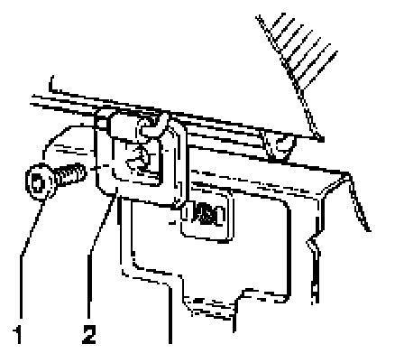 - Press back latching hook -1- on left and/or right using screwdriver.