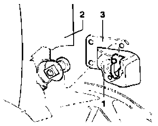 - Remove locks -1- from adapters -3- on seat back center bracket -2-.