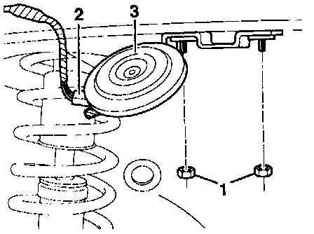 - Disconnect 2-pin connector -2- from alarm horn -3-.