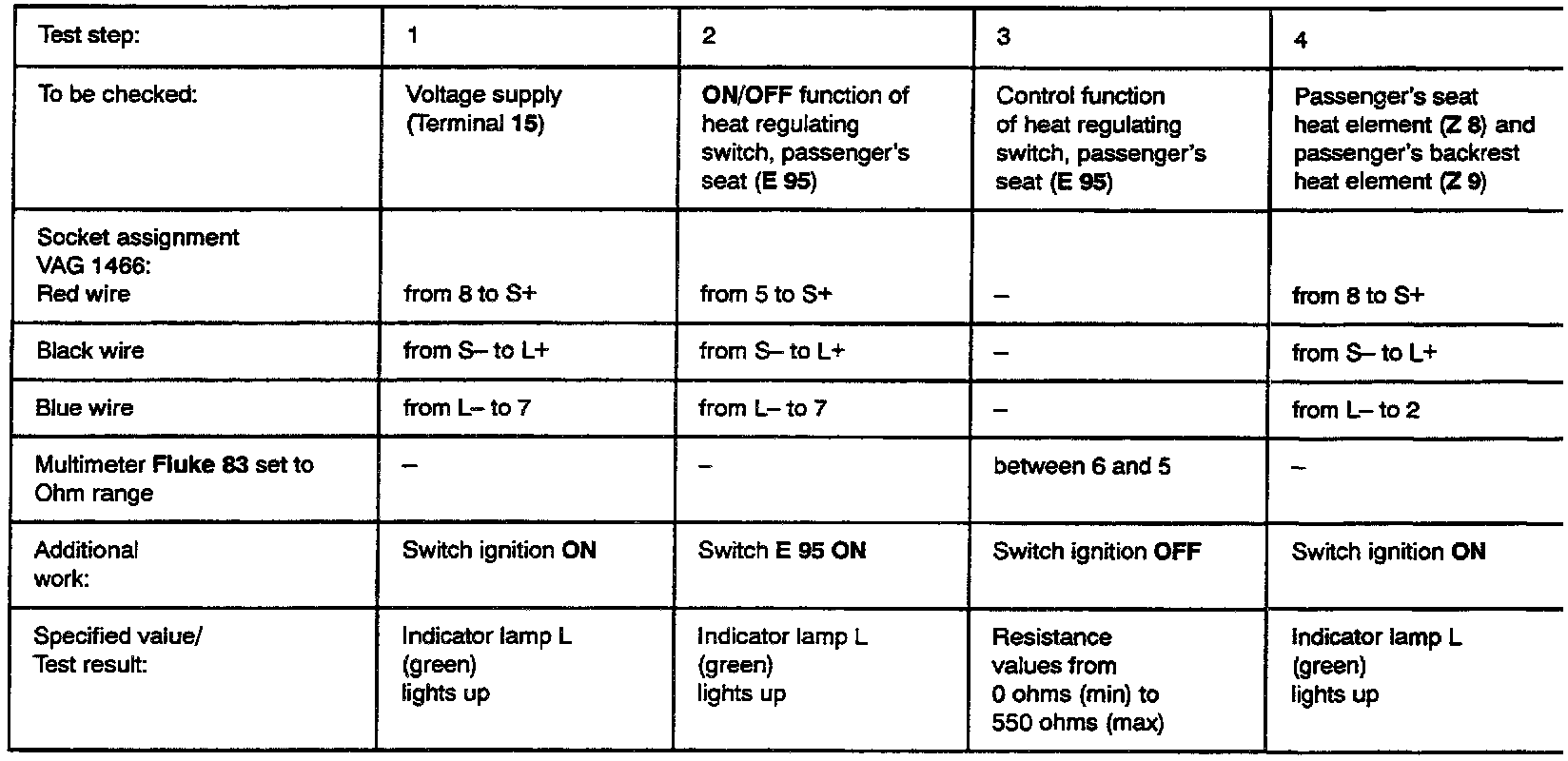 - Remove all test wires from sockets of VAG 1466 after each test step.